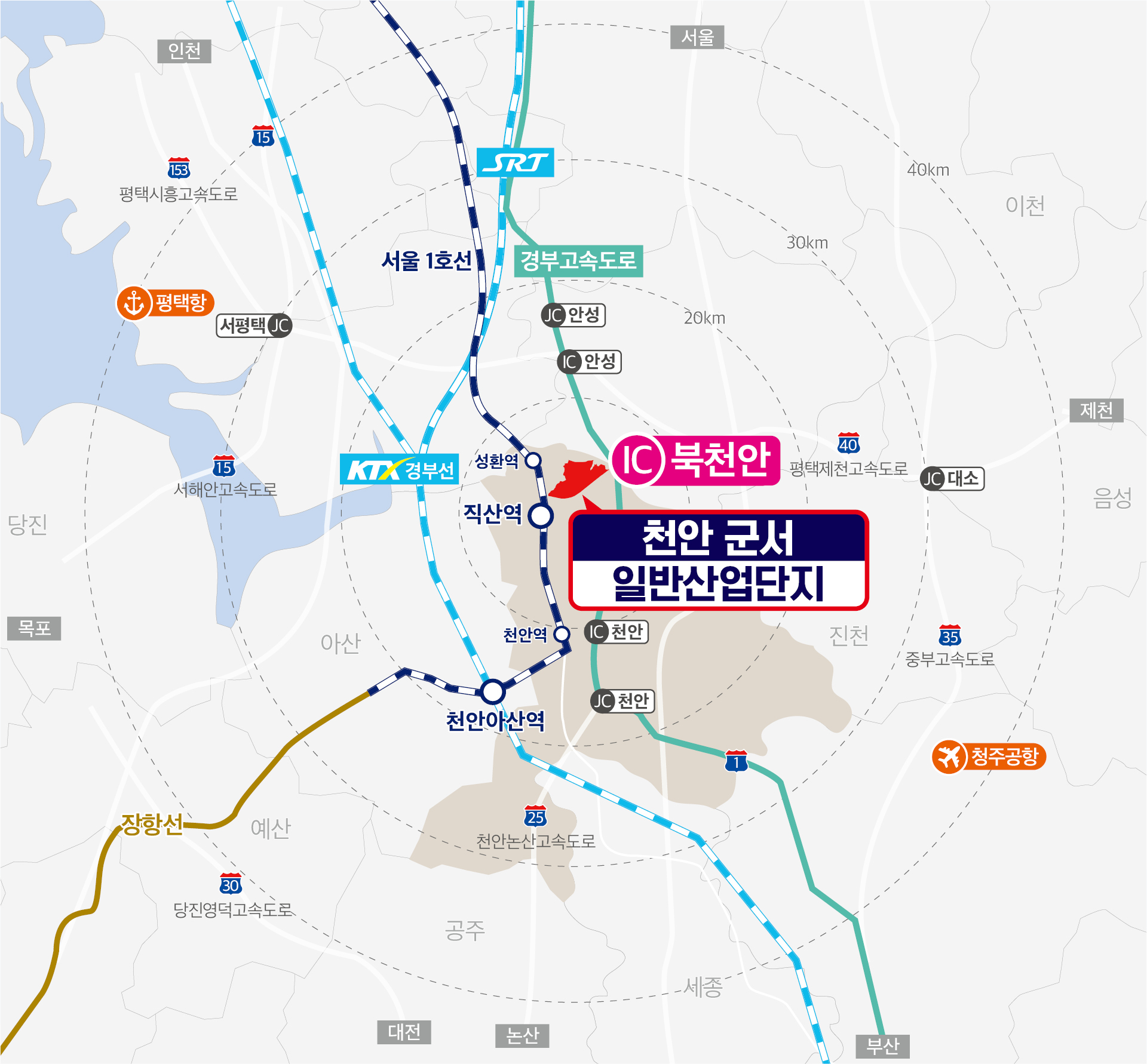 -천안시청과 직선거리 약 9㎞ 지점에 입지